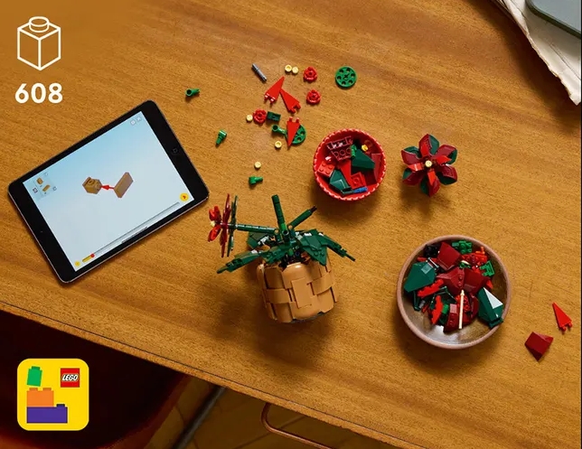 This LEGO® Poinsettia Icons set makes a great Christmas or birthday gift for fans of floral home decor and LEGO building.