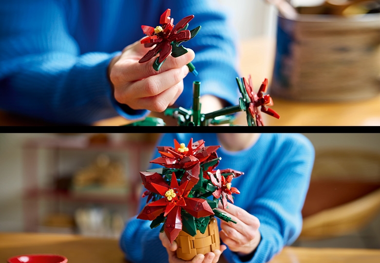 - Plant decor building set for adults – Take time out or join friends and family for a relaxing building experience with the LEGO® Icons Poinsettia building set