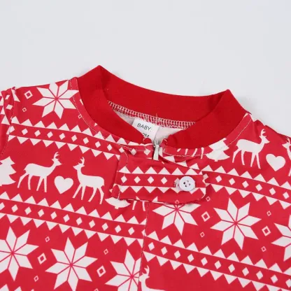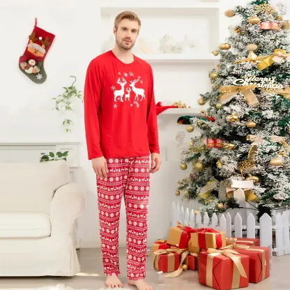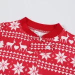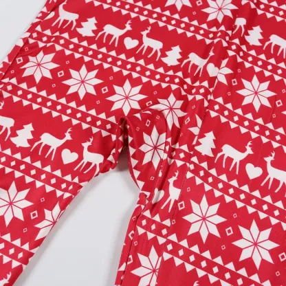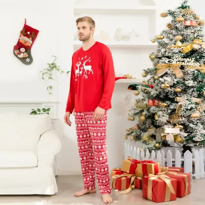 This pajama set features a bold red base with elegant white reindeer motifs, perfectly capturing the festive spirit of the holiday season. The vibrant red background radiates warmth and joy, while the white reindeer adds a touch of classic holiday charm and winter magic.